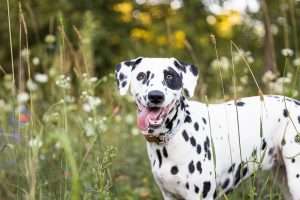 Ruby, this gorgeous Dalmatian smiling for the camera.